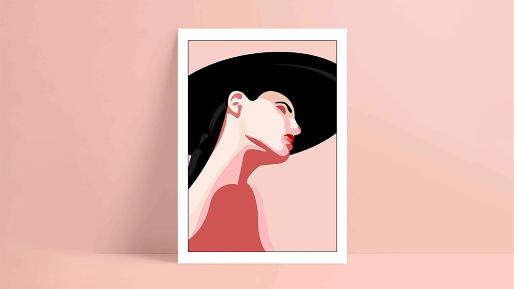 Elegant poster featuring a lady wearing a stylish hat, embodying sophistication and grace.